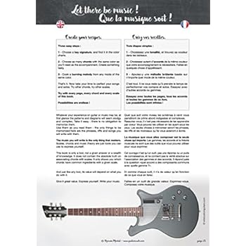 This book is written both in English and French. Le Guitar Cook Book n'est pas une méthode, c'est une super antisèche pour guitariste : quelques conseils et trucs pour vous simplifier l'apprentissage, et plus de 160 gammes et modes, présentés dans toutes les tonalités et toutes leurs positions possibles sur le manche, harmonisés en accords. Et ce, sans solfège. The Guitar Cook Book is not a method, it's a super cheatsheet for the guitar player : tips and tricks to ease learning, more than 160 scales and modes, in every key and every position on the guitar neck, harmonized in chords. Without having to read sheet music.